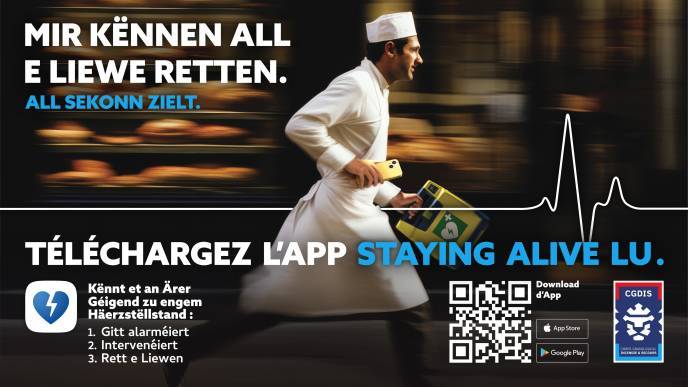 All Sekonn zielt! Mat der neier App « Staying Alive LU » vum CGDIS kënnt Dir hëllefe Liewen ze retten.