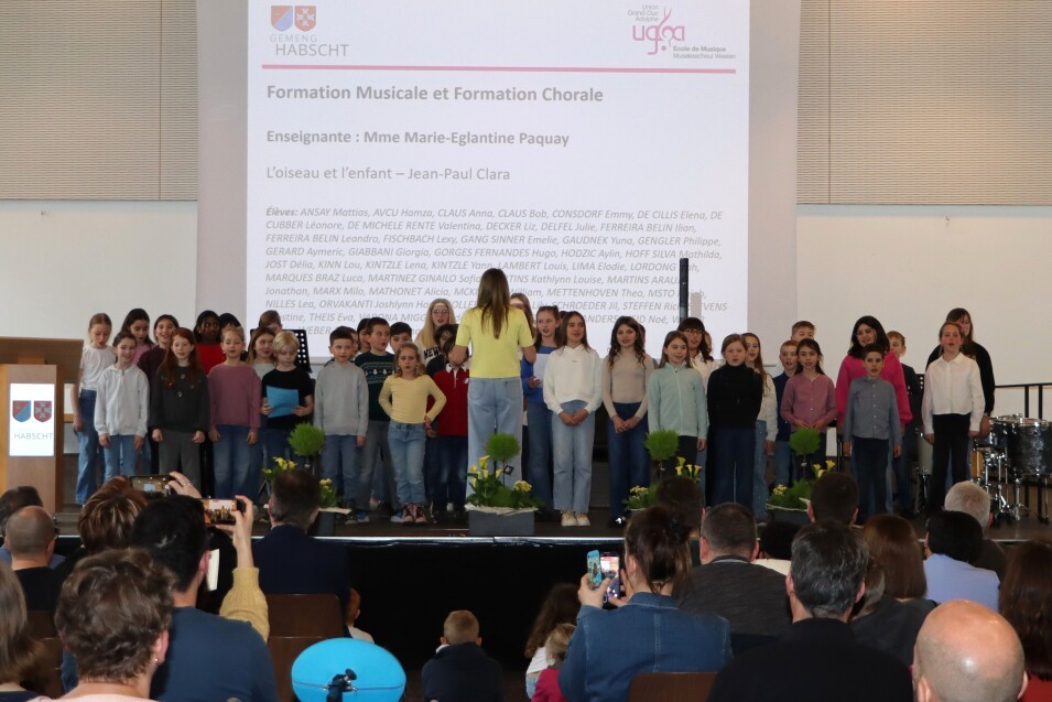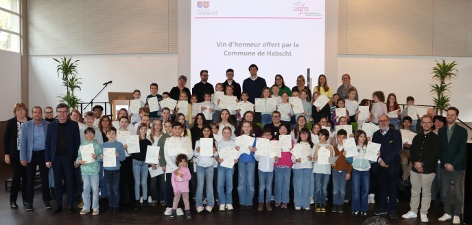 D’Museksschüler aus der Gemeng Habscht, déi an der UGDA Musekschoul ausgebilt goufen, hunn hir Certificate fir d’Schouljoer 2024-2025 entgéintgeholl. D’Zeremonie huet op der Bün vum Centre Polyvalent zu Habscht, a Präsenz vum Schäfferot, Vertrieder vum Gemengerot, dem Direkter Adjoint vun der UGDA Musekschoul, dem Här Yves Popow an de lokale Responsabel, d’Madamm Nicole Wagner an d’Madamm Peggy Klein, stattfonnt.